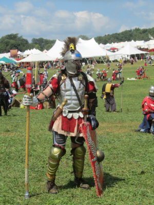 ・セグメンタタを着た典型的なローマ歩兵のイメージをなるべく損なわないようにこしらえたローマ
