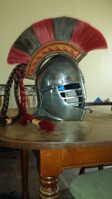 ・バーグリル兜はローマ感が下がるということで、わざわざ仮面付き兜を注文
