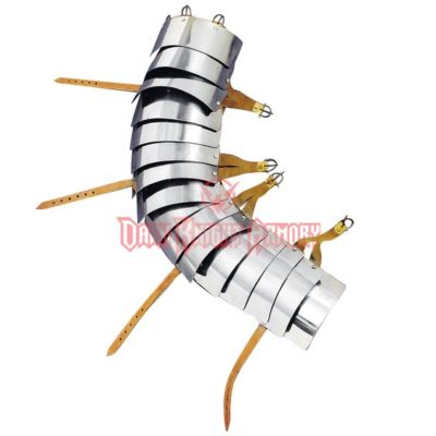 これは前腕鎧(ブレーサー)を肘まで拡張したような鎧で、ルール上必要な防御を提供しつつも必要以上に目立たないという特徴を持っています。素材は鉄製のものもあれば革製のものもあります。