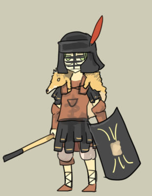 ・手足は強化プラか革製のバズバンドとグリーブ。膝から上に関しては、チュニカの裾で完全に隠してしまえ